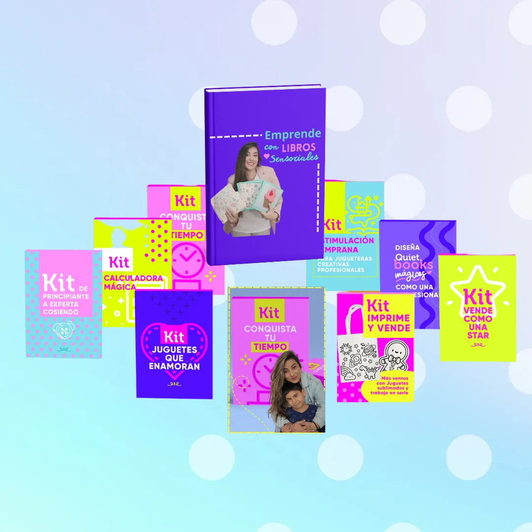 7 Módulos con videos cortos y entretenidos, moldes reales y plantillas prácticas de 8 libros sensoriales atractivos y tiernos, acceso a 200 lecciones, entrenamientos, videos tutoriales y descargas.
